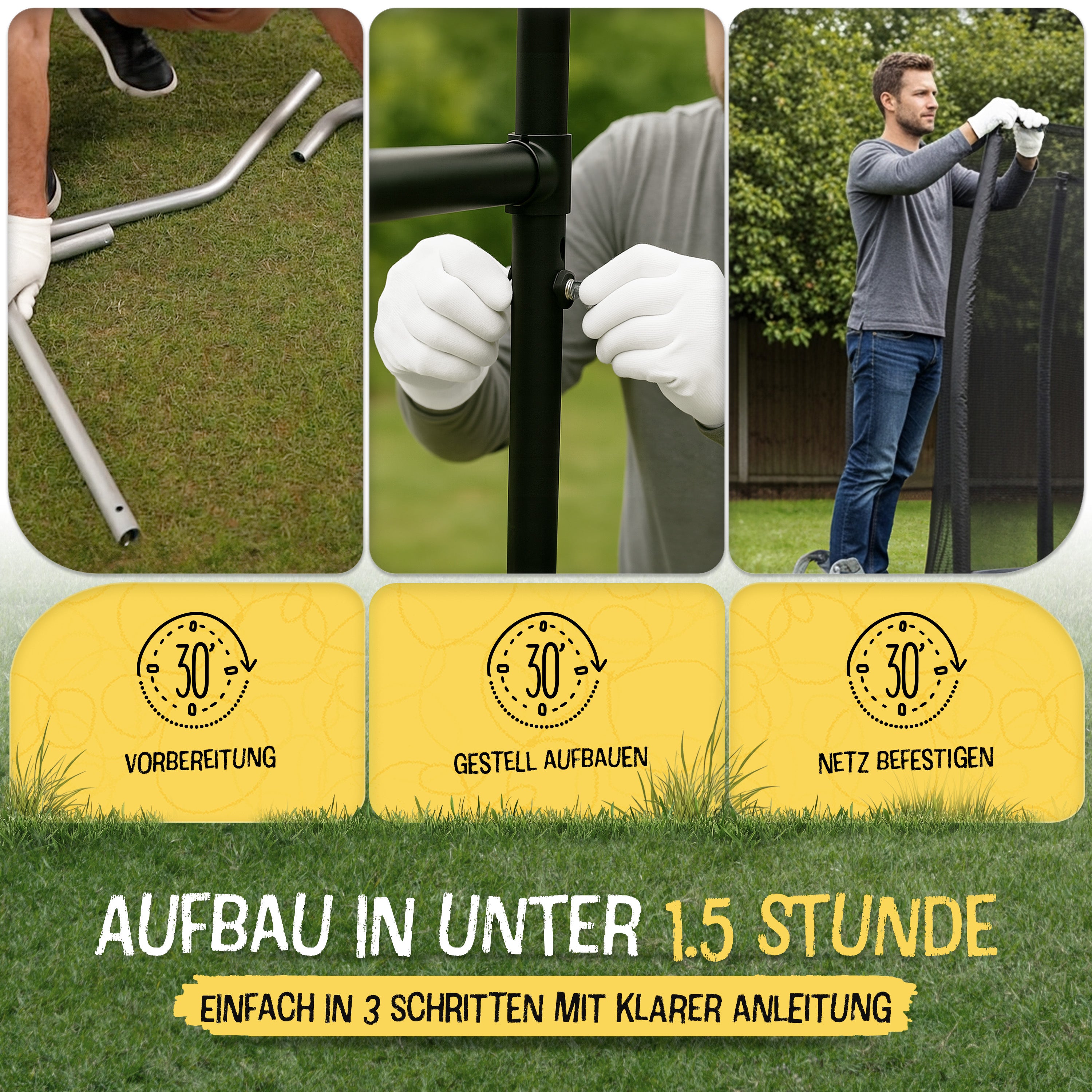 Mit unserer klaren Anleitung und durchdachten Konstruktion steht euer Trampolin in nur drei Schritten: